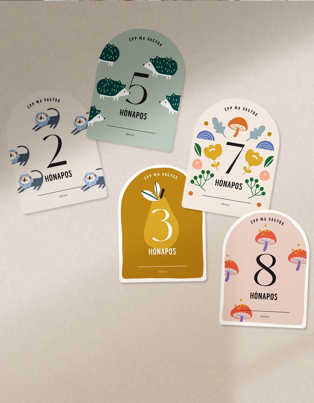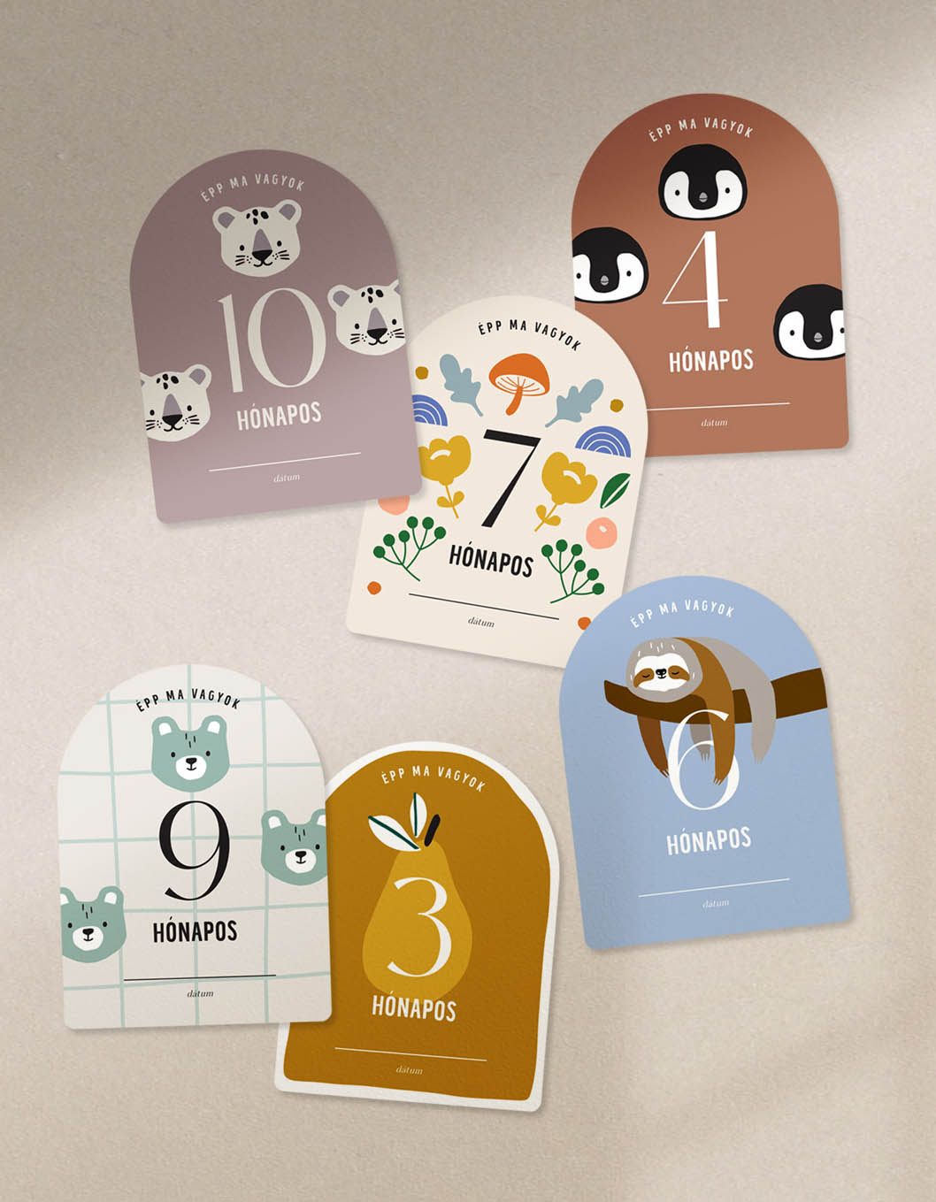 Segítünk megőrizni ezeket a gyorsan múló pillanatokat: tedd a hónapkártyákat a kisbabád mellé, és készíts minden hónapban egy fotót. A színes, vidám debabás karakterekkel tervezett kártyák kedves kísérői lesznek a baba első évének – és ne felejtsd el ráírni a dátumot sem. Pár év múlva már nehezebb lesz visszaidézni, pontosan mikor volt 5 vagy 11 hónapos.